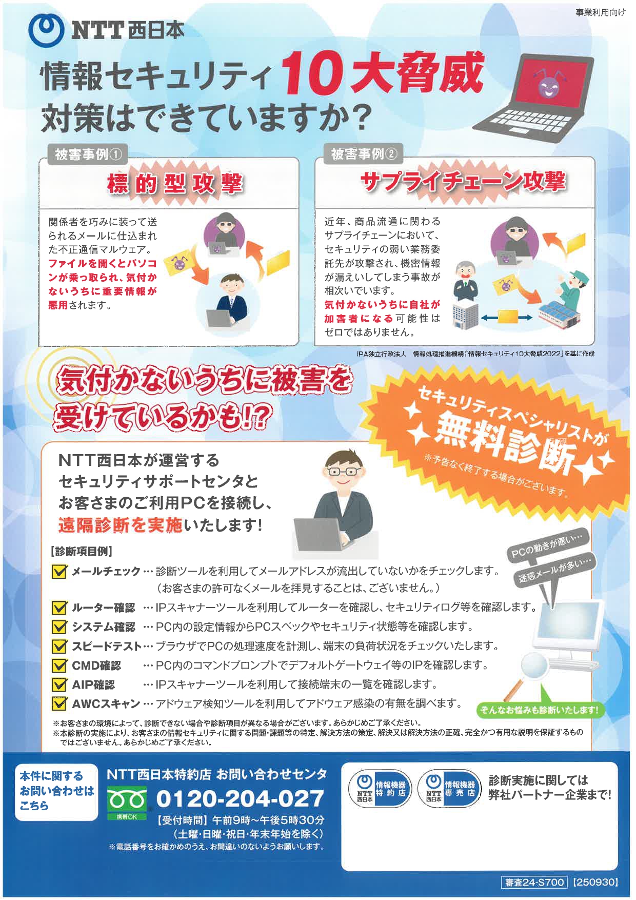 🔍 セキュリティスペシャリストによる無料診断を実施中!
